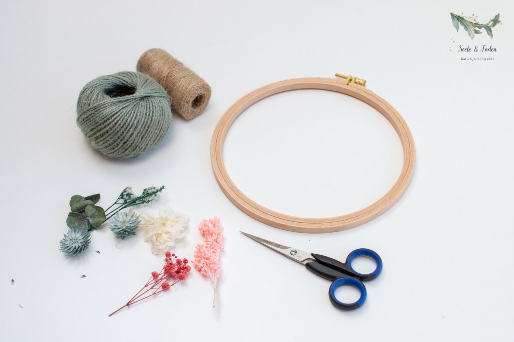 Einfach einen Stickrahmen, etwas Jute und Kleber und schon habt ihr eine schöne Deko.